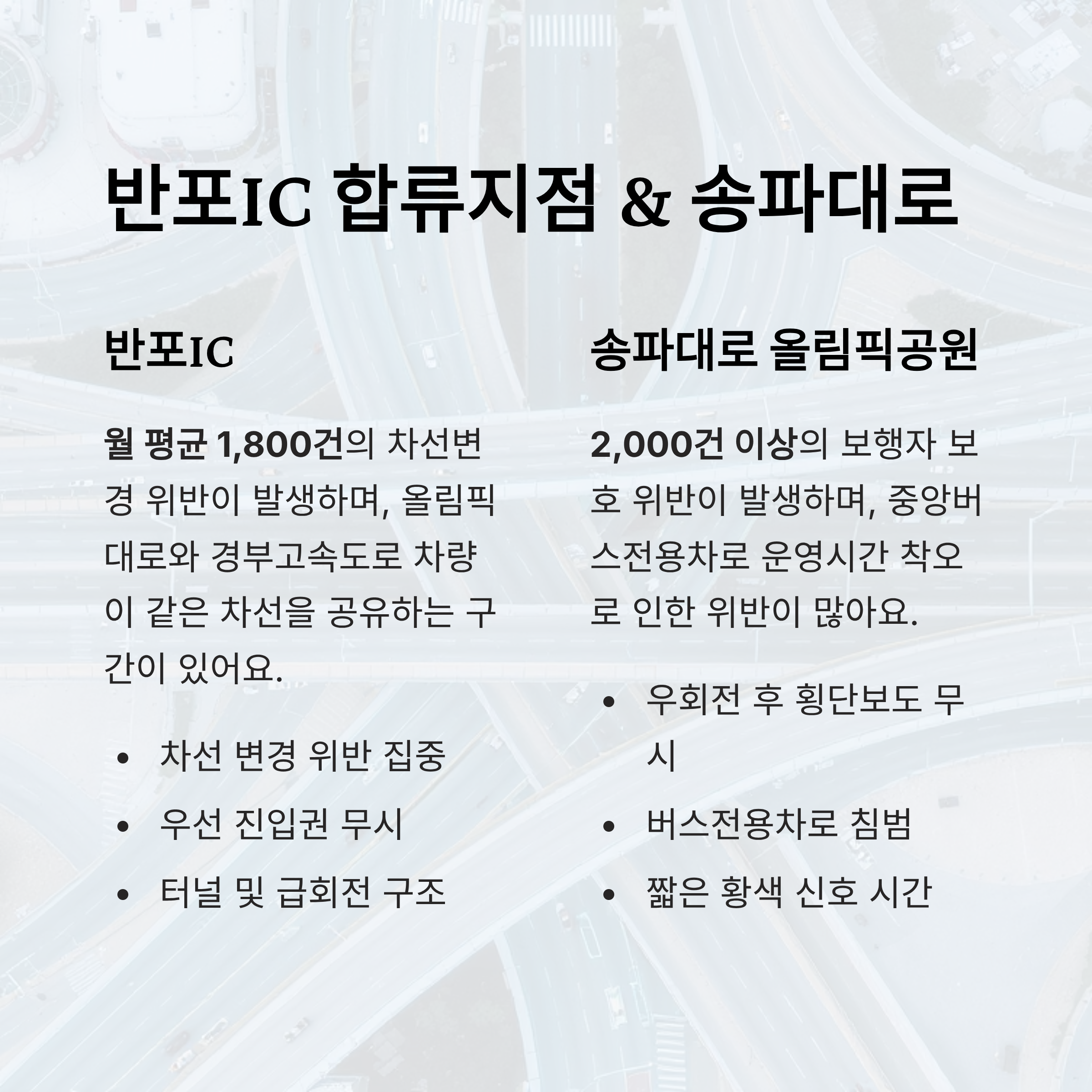 반포IC는 서울 한복판에서 경부고속도로와 올림픽대로, 서초구 일대 시내도로를 연결하는 중요한 합류지점이에요. 이 지역은 입체교차로와 터널, 나들목이 얽혀 있는 복잡한 구조로, 한 순간의 방심이 법규 위반으로 이어지기 쉬운 대표적인 구간이에요.