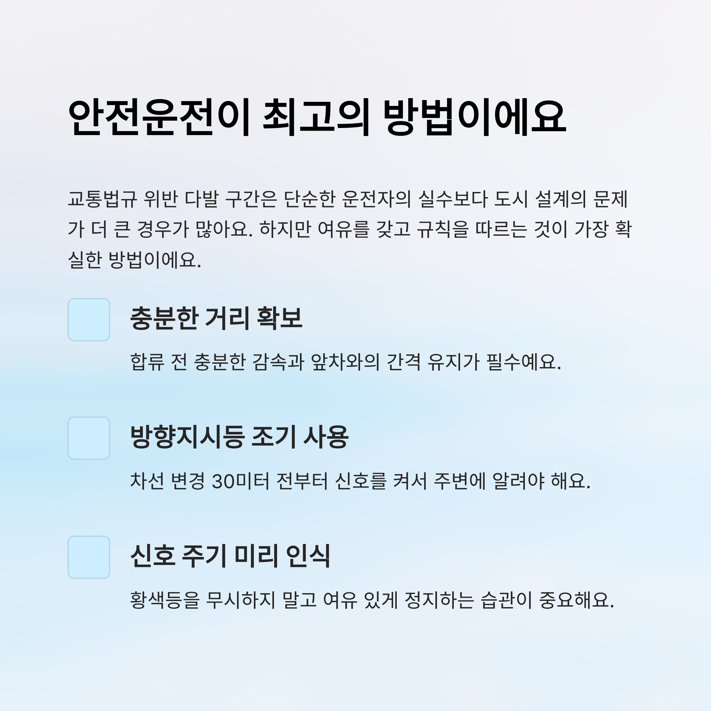 운전자 입장에서 이 구간을 안전하게 통과하려면 합류 전 충분한 감속, 방향지시등 조기 사용, 간격 유지가 필수예요. 무엇보다 여유 있게 진입해야 사고 없이 무사히 지나갈 수 있어요 🚘