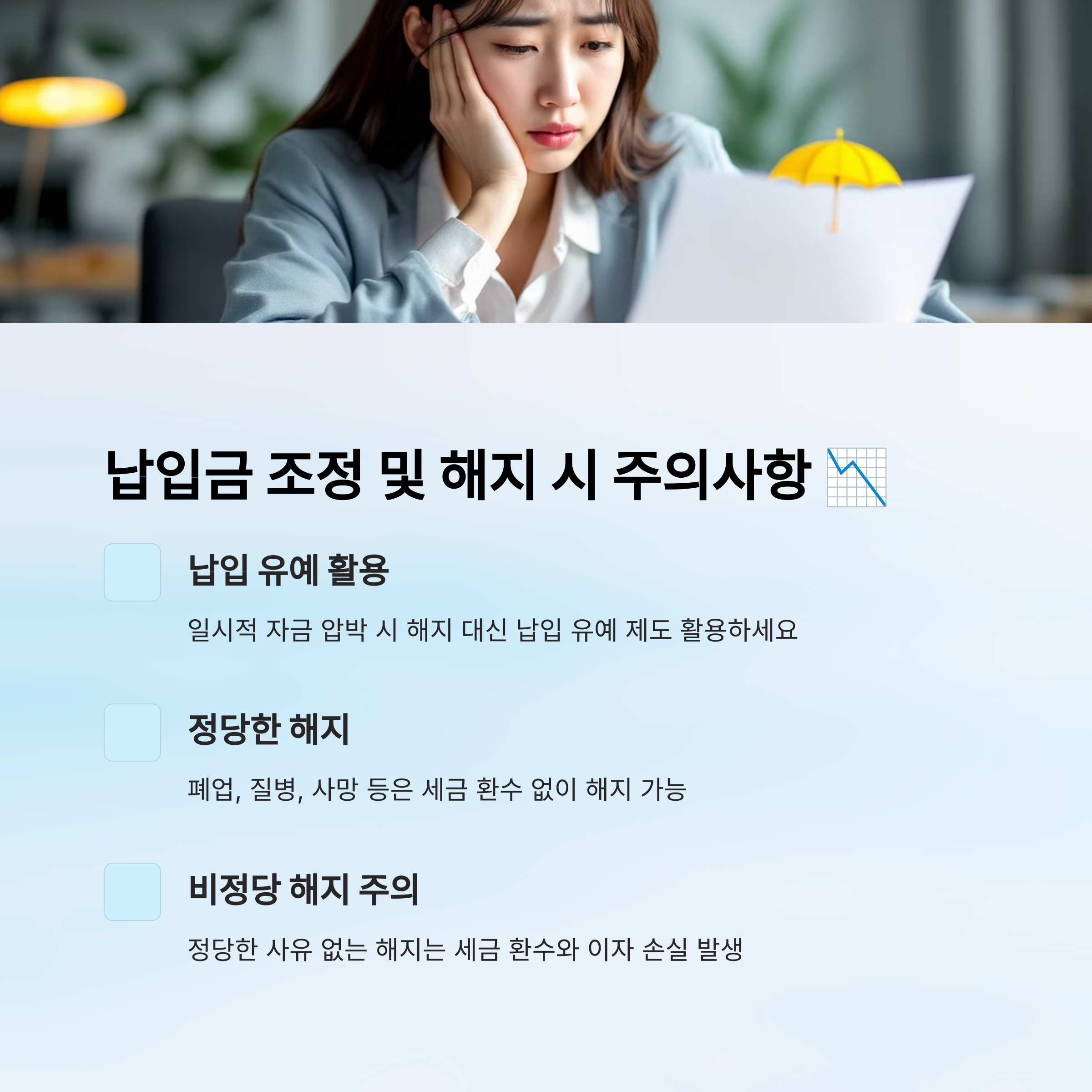 📉 납입금 조정 및 해지 시 유의사항