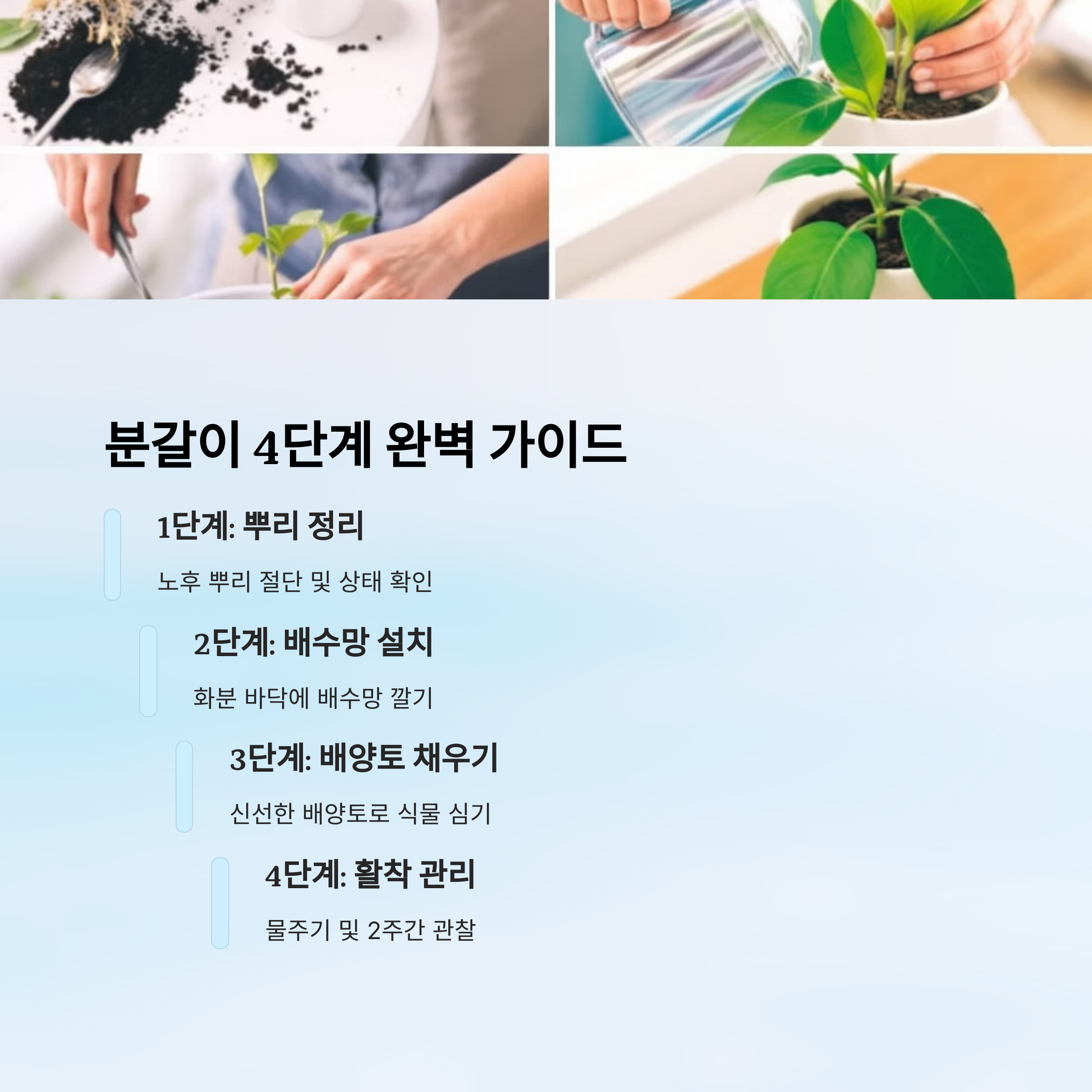 💡 단계만 기억하면 누구나 쉽게 분갈이 완성할 수 있어요!