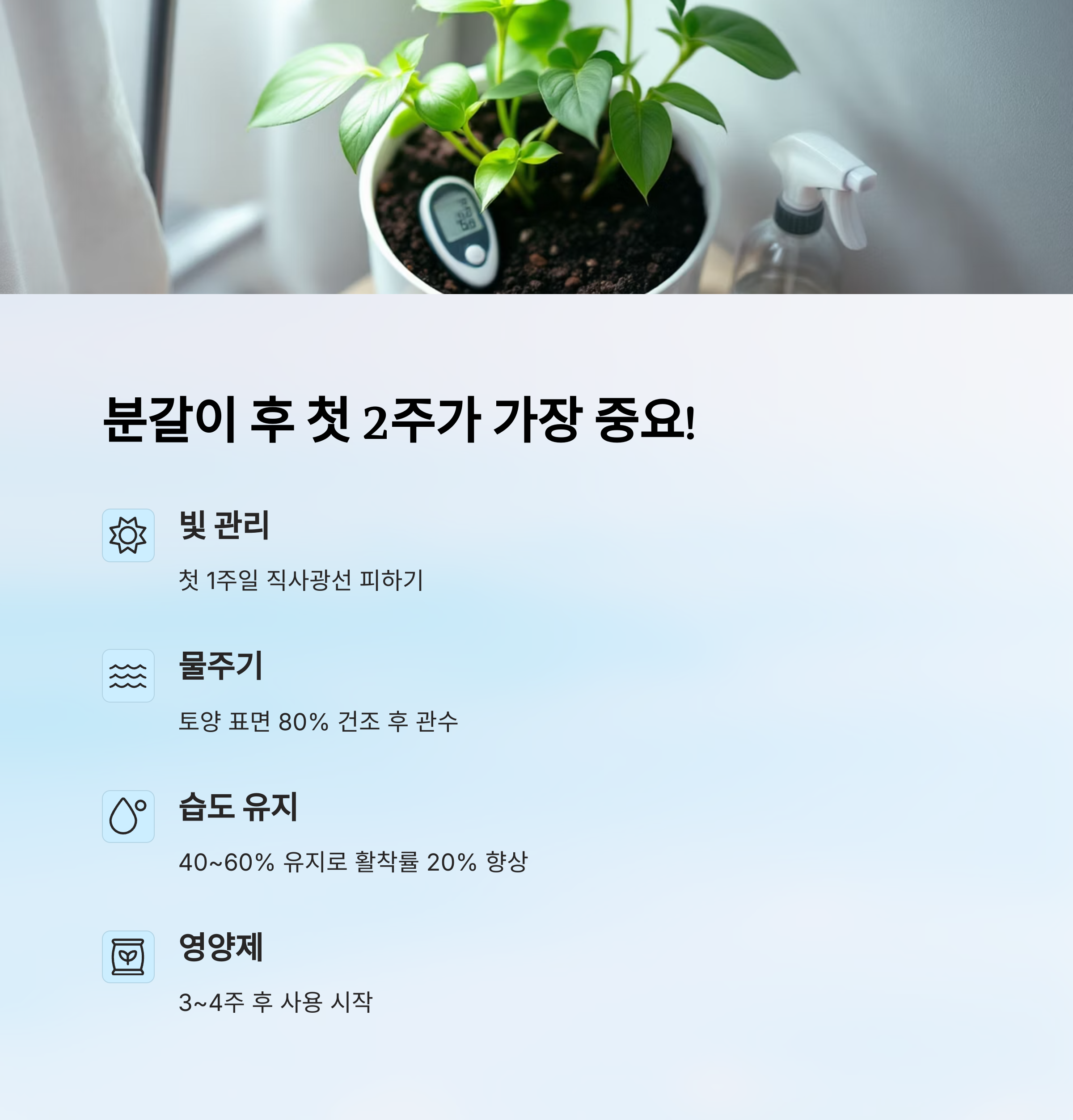 ✨ 분갈이 후 첫 주는 식물에게는 가장 예민한 시기예요!