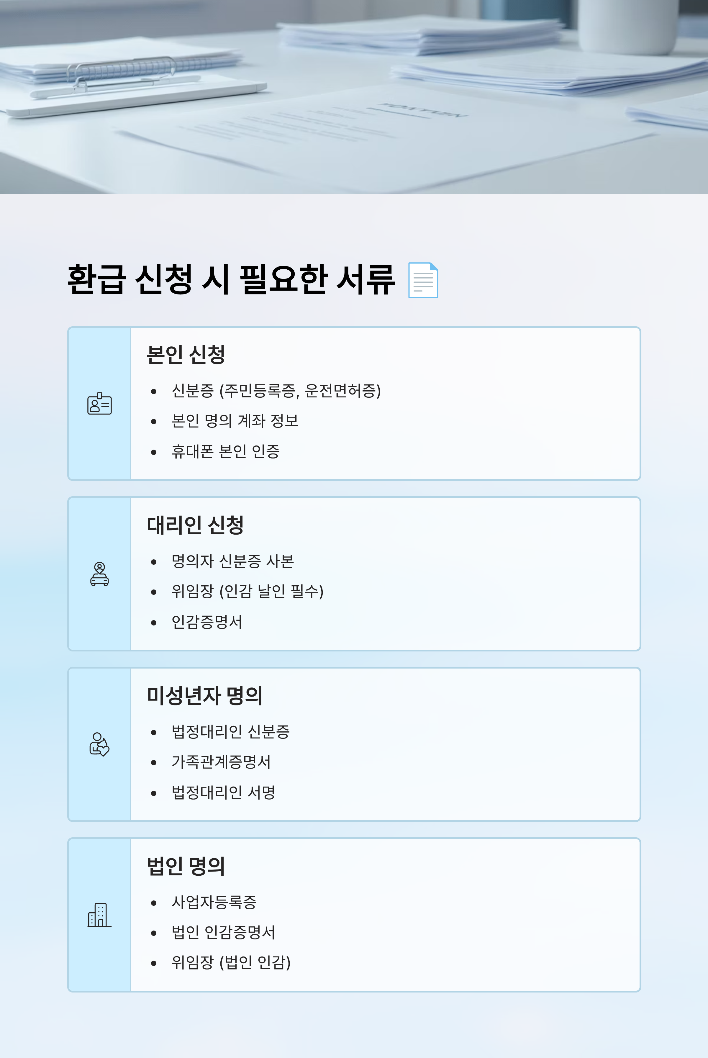 A6. 서류가 미비하거나 본인 명의 계좌가 아닌 경우, 명의가 확인되지 않으면 환급 처리가 보류되거나 거절될 수 있어요. 이 경우엔 서류를 보완해서 다시 신청하면 돼요. 📑