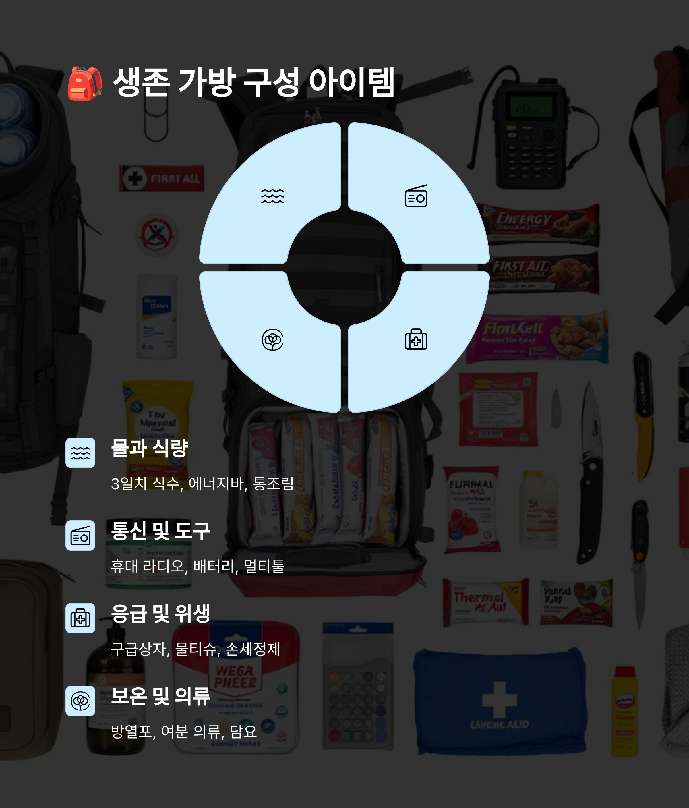 🎒 생존 가방은 '작지만 강력한 생명줄'이에요. 꼭 미리 준비해두세요!