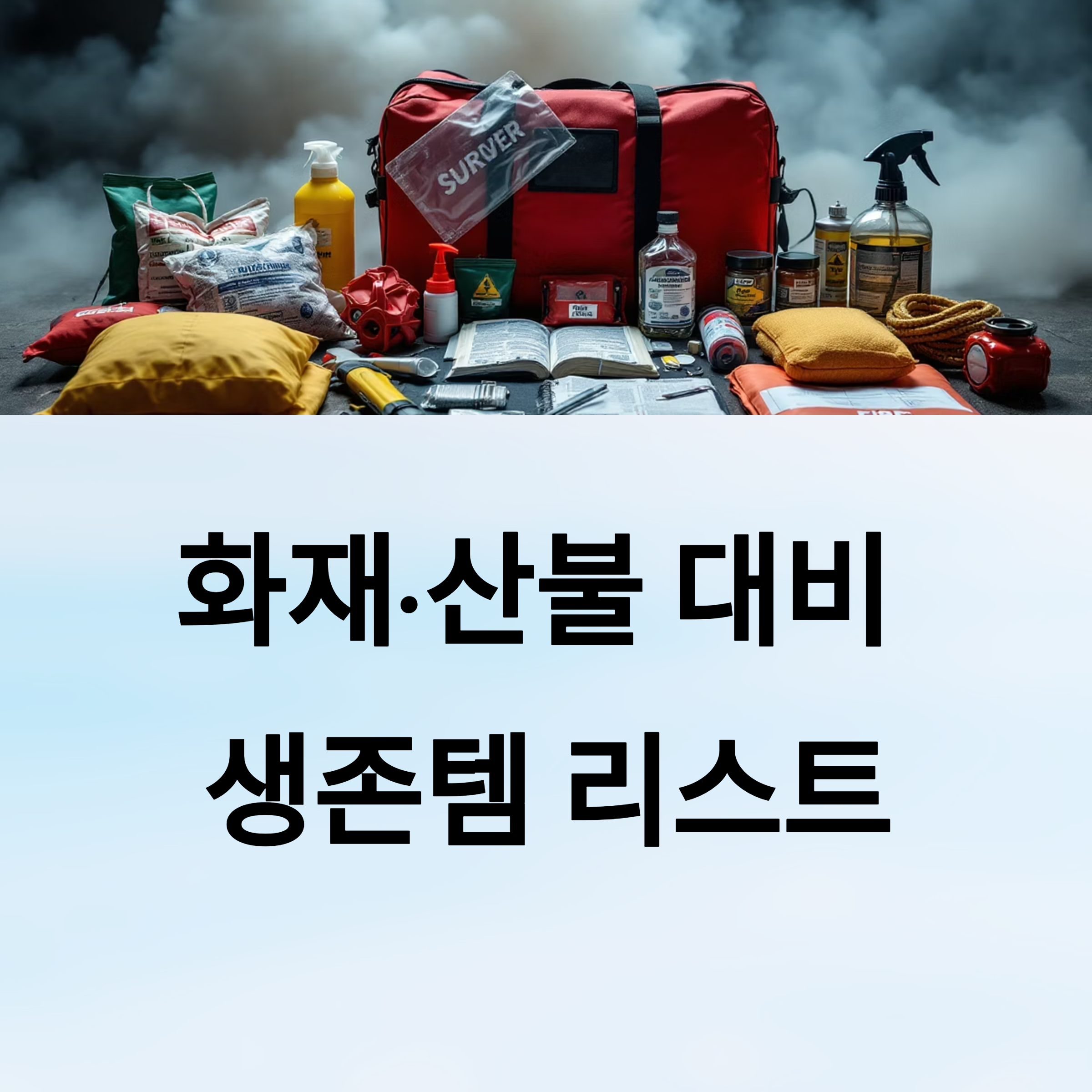 화재나 산불이 발생하면, 미리 준비된 생존템 하나로도 생명이 지켜질 수 있어요. 급하게 뛰쳐나올 수밖에 없는 상황이기 때문에, 꼭 필요한 필수템을 한 자리에 모아두는 게 가장 중요해요.