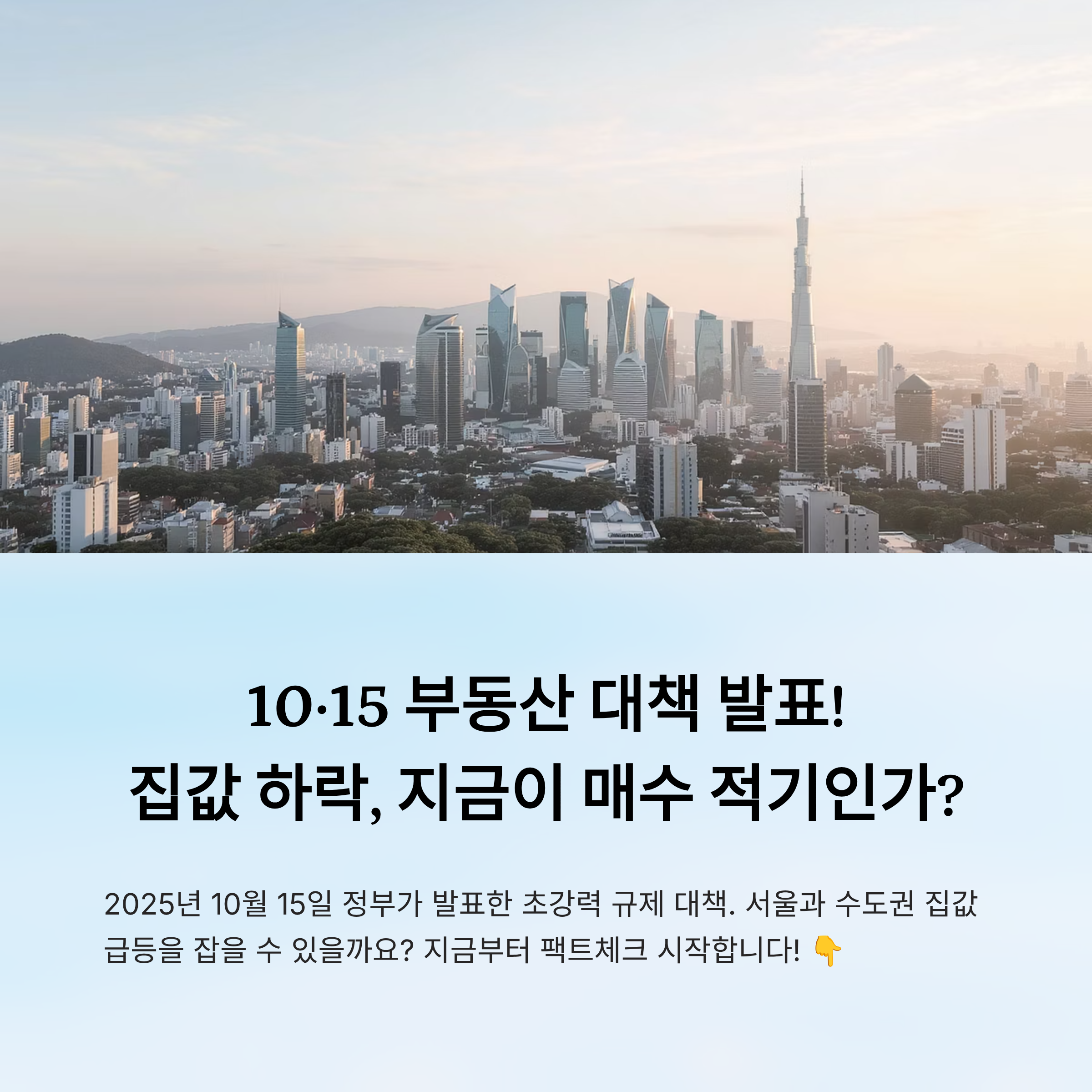 2025년 10월 15일, 정부가 발표한 '10·15 부동산 대책'은 그야말로 초강력 규제의 총집합이에요. 서울과 수도권의 집값 급등과 투기를 잠재우기 위한 조치로, 대출 규제와 실거주 요건 강화가 핵심이에요. 그런데 이런 대책이 과연 집값 하락으로 이어질까요? 무주택자는 지금 집을 사야 할까요, 기다려야 할까요? 🧐 지금부터 하나씩 팩트체크해볼게요!