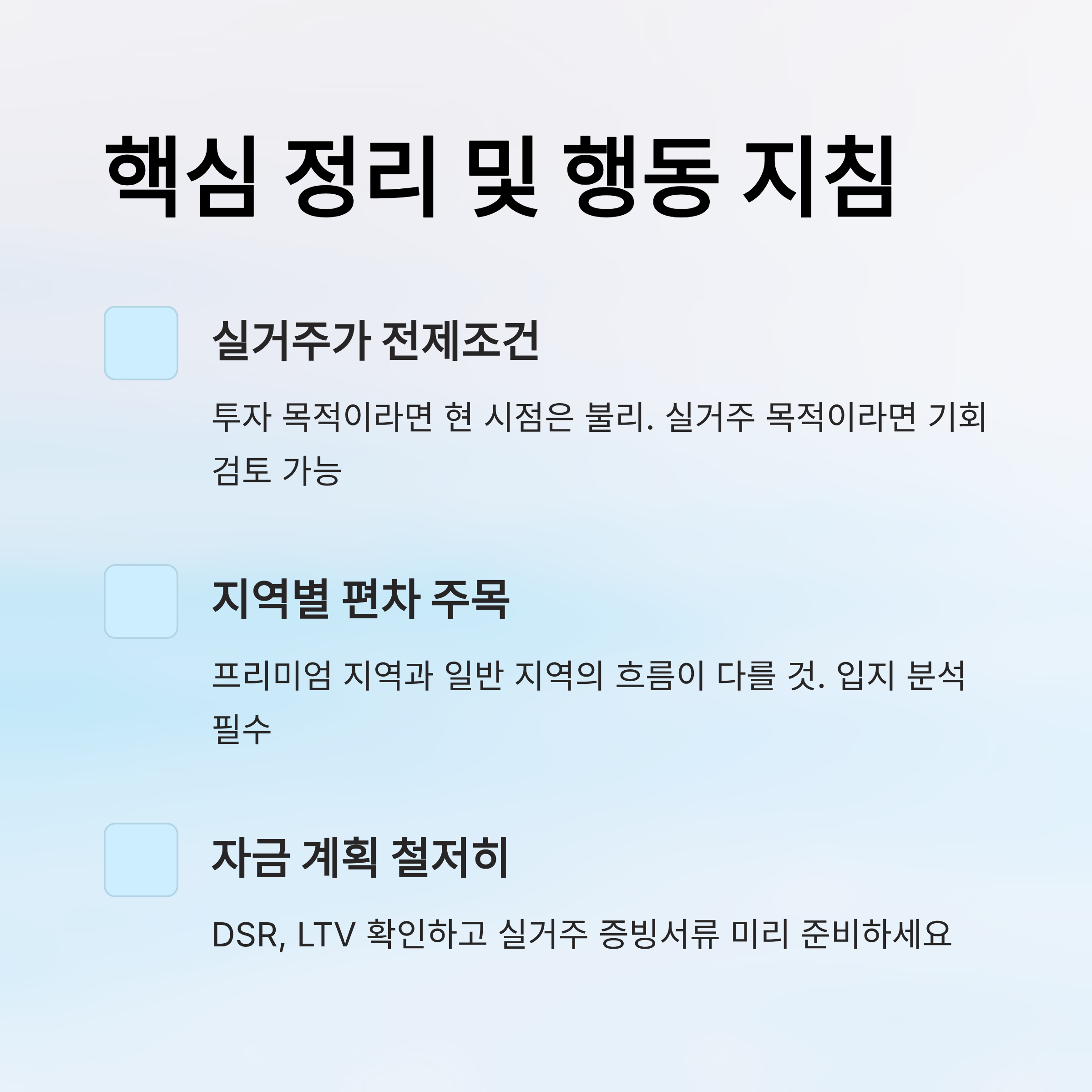 결국 시장의 핵심은 '실거주 수요'와 '공급 부족'이에요. 정책은 단기적으로는 심리를 흔들 수 있지만, 기본적인 시장의 수급 원칙은 여전히 유효하다는 걸 기억해야 해요.