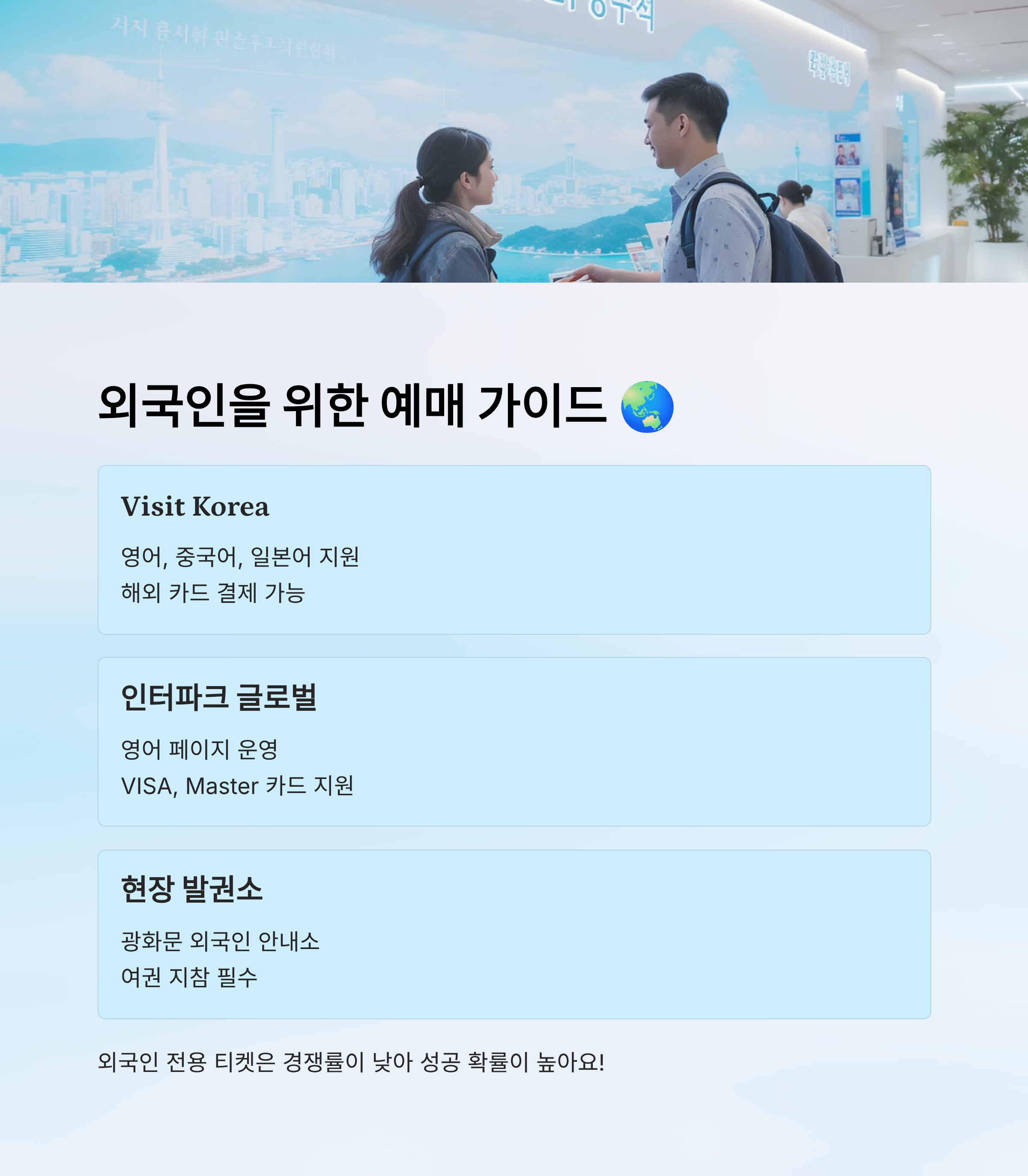 🌐 외국인 전용 티켓 예매 채널 비교표